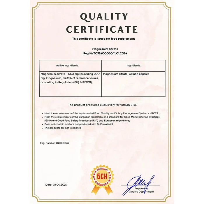 Има ли странични ефекти- Магнезиевият цитрат е безопасен при препоръчителния прием. Въпреки това, прекомерната доза може да доведе до стомашни разстройства или диария.За оптимални резултати не се препоръчва да се превишава препоръчаната дневна доза.
